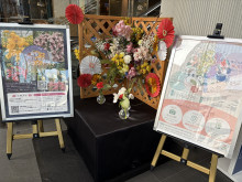 今回の展示は、コモ・スクエア ウエスト棟1階ロビーを会場に行い、地元農家が出品した23品種36鉢のシンビジウムを展示。近隣に位置し、同ビル地下の駐輪場を利用する生徒が多い愛知県立豊田北高校華道部ともコラボし、「正月」をテーマに紅白の飾りや水引をあしらった花のオブジェも展示している。