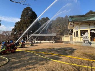 「令和7年度みよし消防署 文化財防火デー消防訓練」が1月24日、八柱社(みよし市明知町)で行われた。